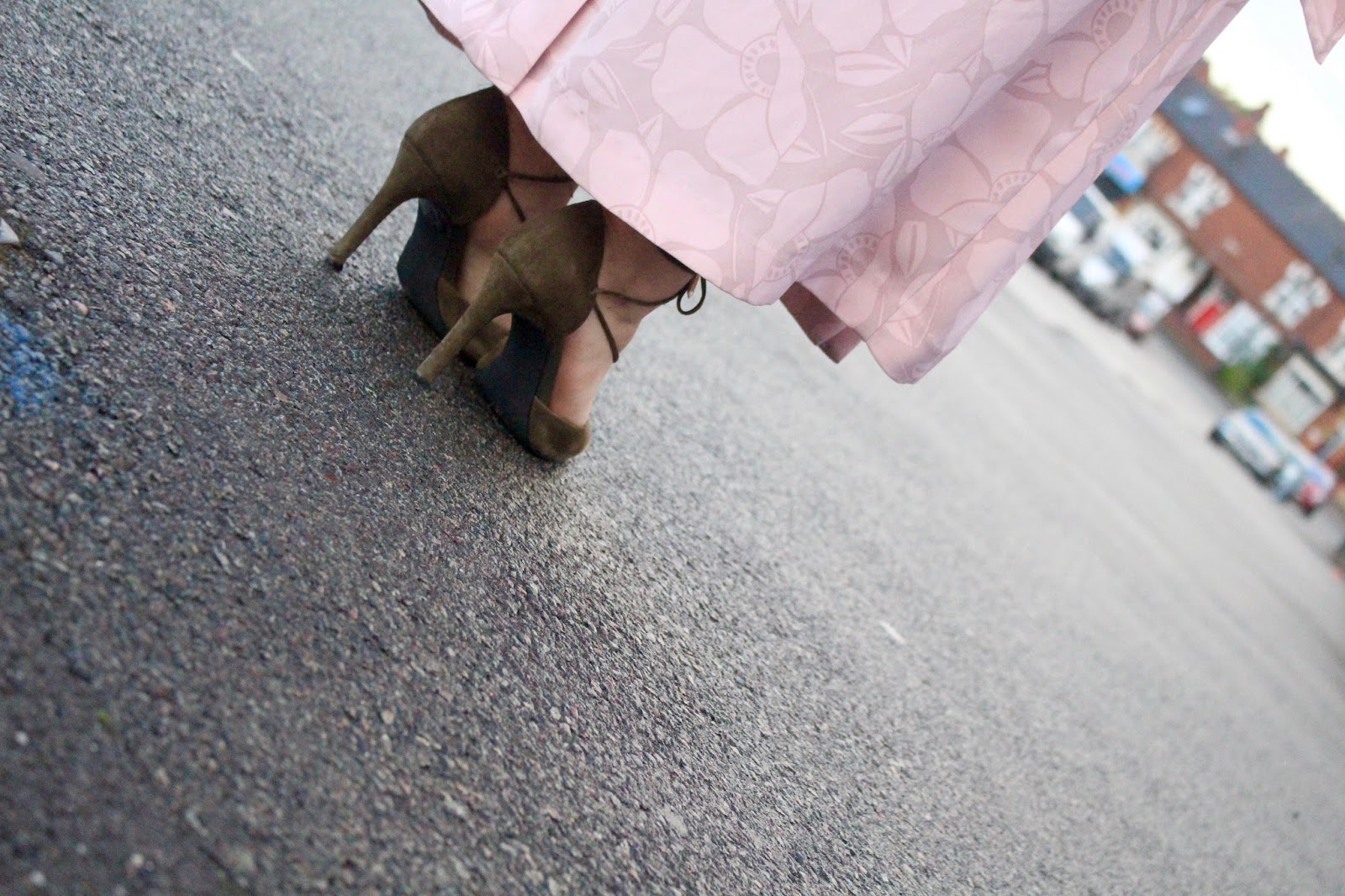 This time I decided for a denim strapless dress, which is kind of staple- good for every single season and matches with basically everything. I think it's very useful piece, got main from vintage shop with great quality denim and really cheap price but this season you can get one in almost every single high street store. I matched it with this genius pastel pink, floral coat, which created a little more extra feminine look and by the way it's an ideal lightweight layer for a cooler summer evenings, which here are rather too often! The Love Moschino cross-body ivory bag is one of my newer acquisitions, another really useful and handy(literally) staple that I wear almost everyday since I bought it. The shoes in neutral khaki colour... well I just love them, won't say anything about them as I described how great they are a couple times already 💞